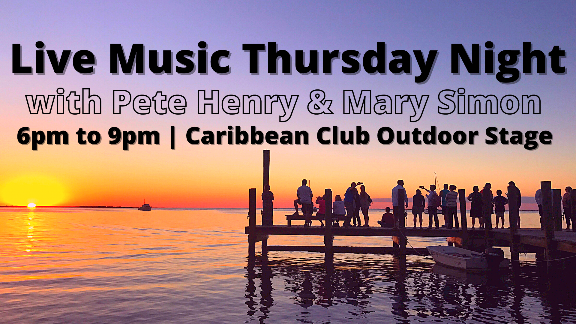 Join us for live music on our outdoor stage by Pete Henry and Mary Simon from 6pm to 9pm. Come for sunset and stay to enjoy some of your favorite classic rock, country, blues and folk songs.