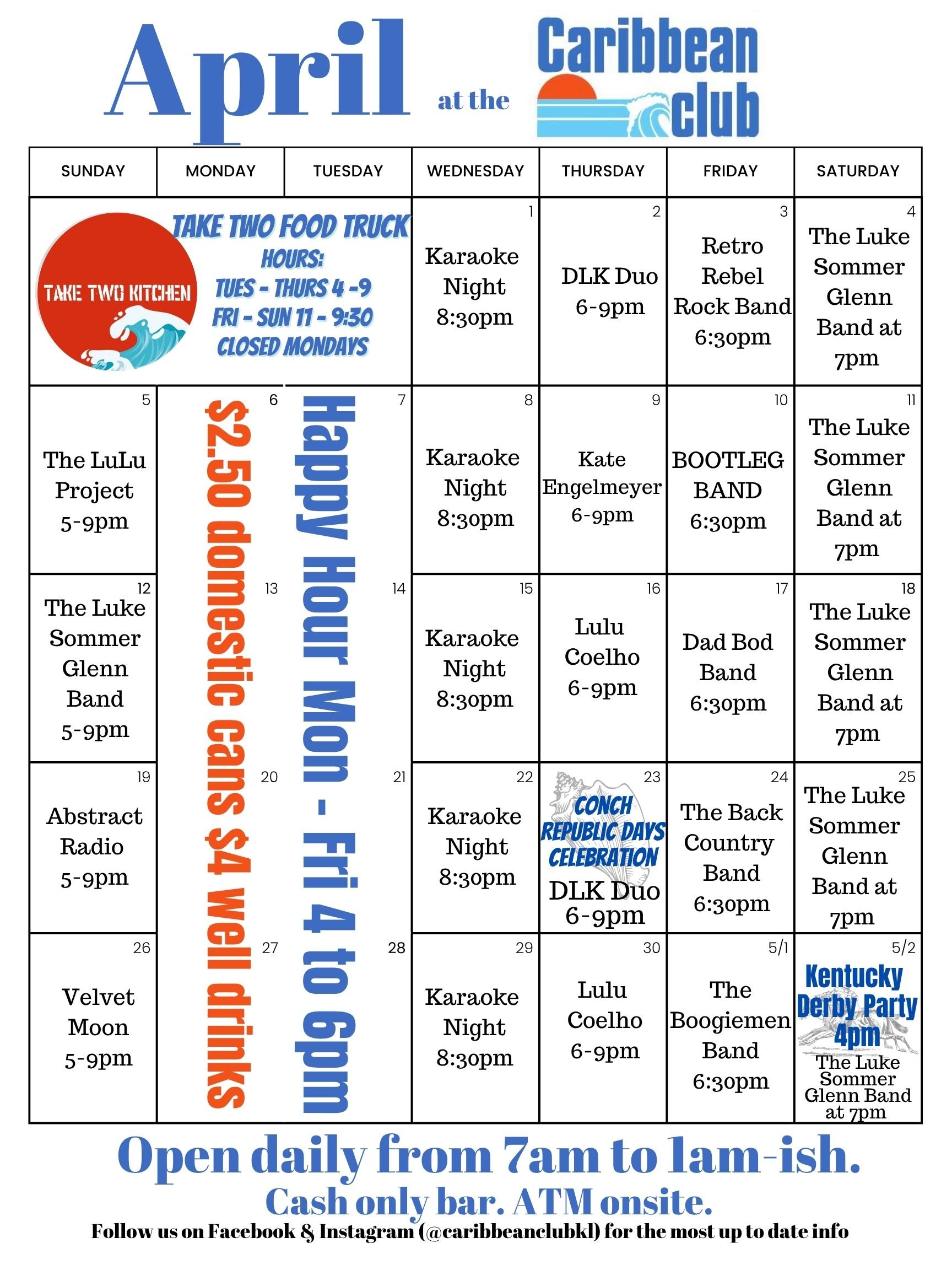 BAR HOURS: 7AM TO 1AM-ISH Daily